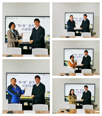 2022年2-3月,老虎机 首届“数•聚”提升工程圆满结业。院长谢琪、党委书记徐金芳出席结业仪式并为优秀学员颁发证书。