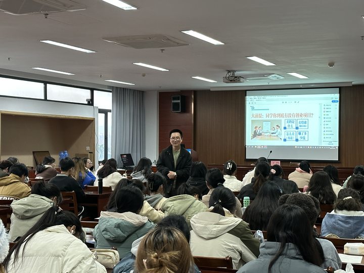 讲座伊始,丁伟老师向同学们介绍参与科创竞赛的必要性和重要性,解读了老虎机 针对大赛的激励政策。他指出,在大学拥有竞赛经验不仅能增强自己的核心竞争力,对未来就业和读研都有一定的帮助。随后,丁伟老师围绕大赛基本情况、赛制变化和参赛技巧三个方面,结合丰富的案例对参赛项目的确定,申报材料打磨提升等内容进行了深入浅出的讲解。同时,阐述了数学专业的行业现状和发展趋势,启发同学们对个人职业规划和创业观念有更深层次的认识。会后,同学们积极地提出了自己的疑问,丁伟老师针对每一个问题做出了细致的解答并提供相应的思路引导和建议。