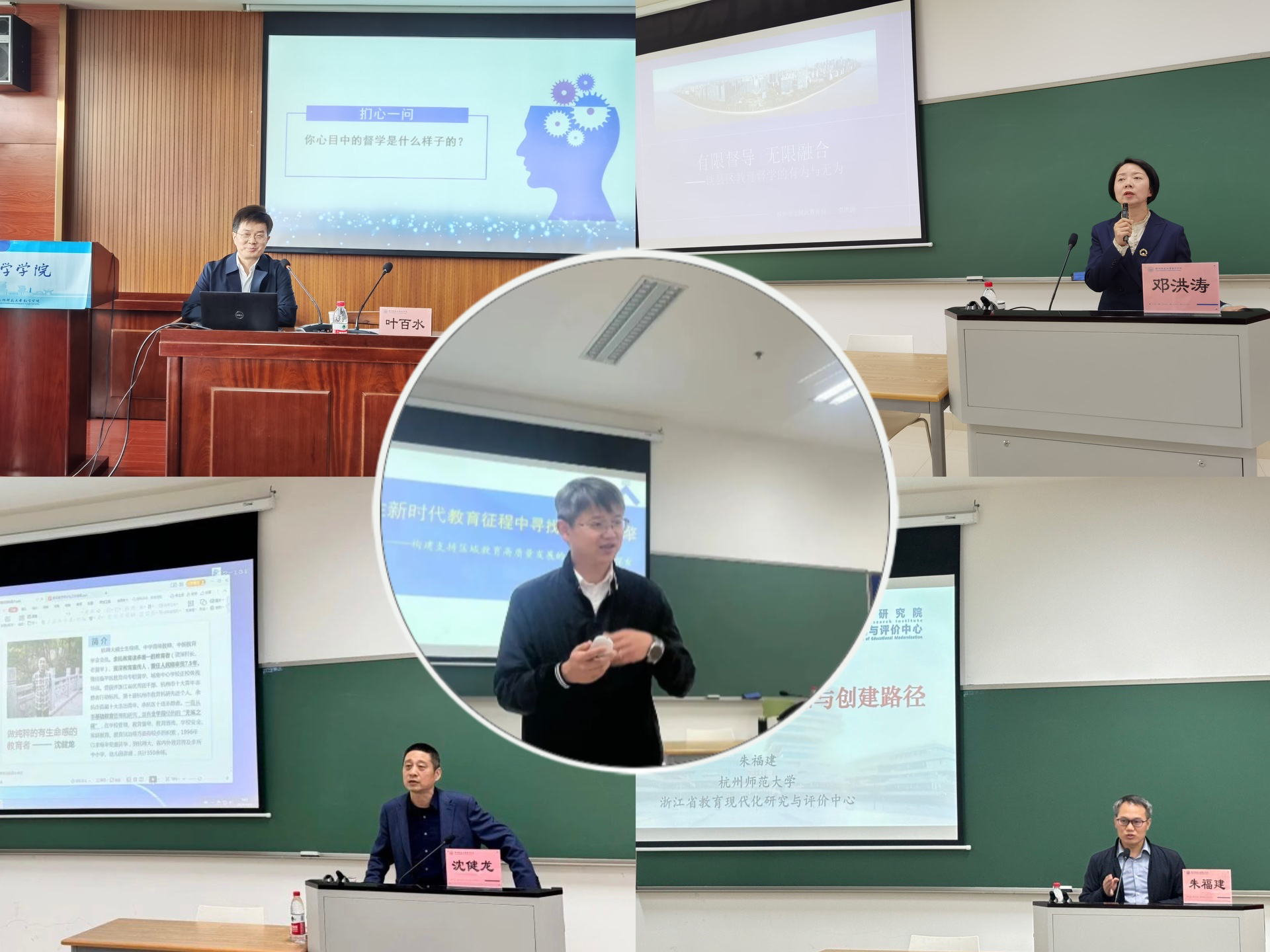 本次培训班主要包括专题讲座、论坛研讨、案例展示、实地考察等教学形式。拱墅区教育局副总督学叶百水带来了《深化评价改革,促进高质量发展——杭州拱墅精准督导例谈》精彩报告,临平区教育局专职督学沈健龙作了《责任督学常态化工作指南——浅谈责任督学的工作理念、方式及视角》专题讲座,上城区教育局专职督学邓洪涛分享了《有限督导、无限融合——谈县区教育督学的有为与无为》督导工作指导课,浙江省教育现代化研究与评价中心博士朱福建阐述了《现代化老虎机 的核心理念与创建路径》,上城区教育老虎机 党总支书记伍小斌的《在新时代教育征程中寻找发展新引擎——构建支持区域教育高质量发展的新评价系统探索》引发了学员们新的思考。