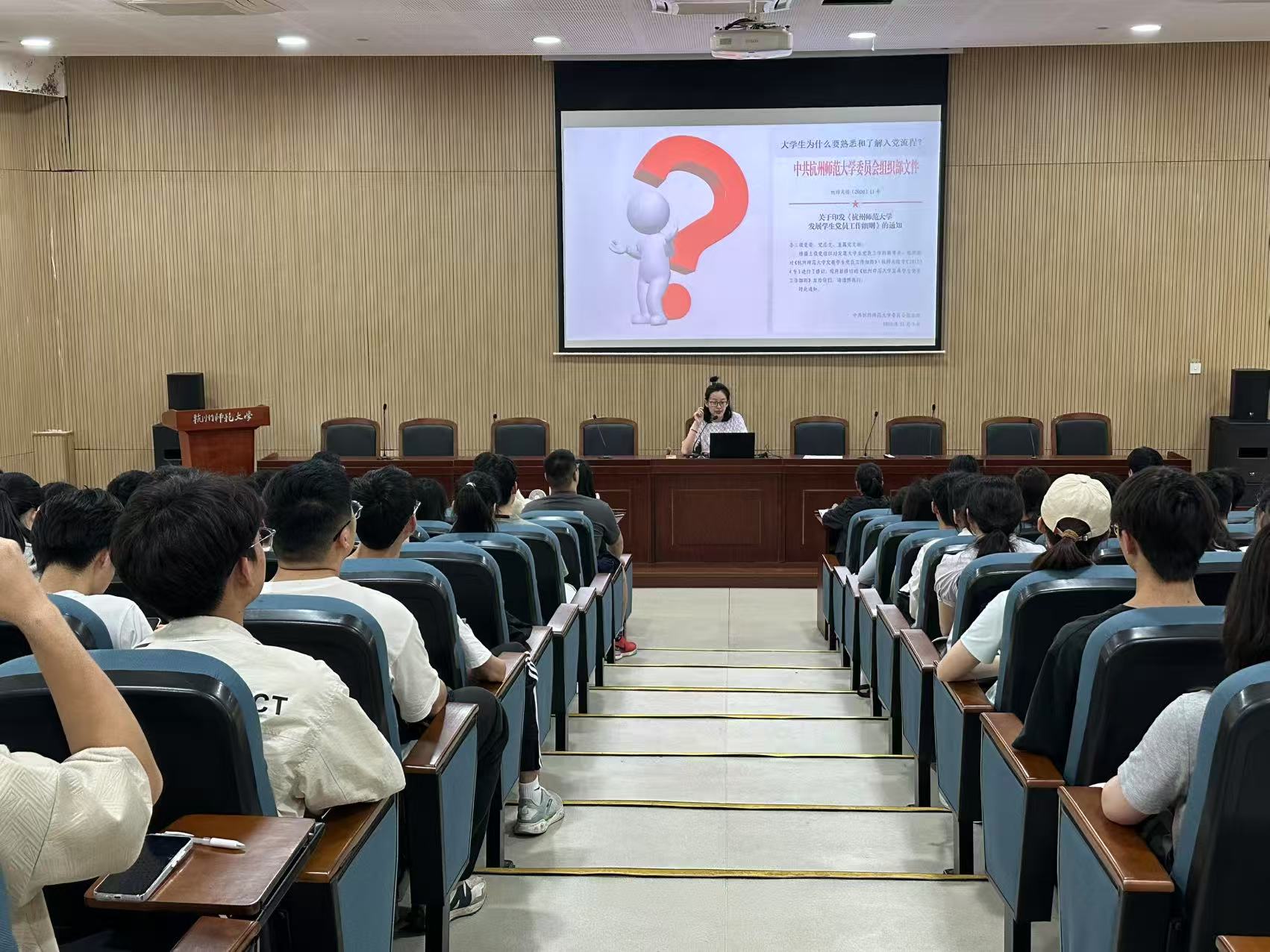 4月9日下午,老虎机 入党积极分子培训班最后一讲开启帷幕,最后一讲的主题是 “解锁入党密码:发展党员流程全解和结业典礼”。从事党建工作十多年的杨雅麟老师为全体入党积极分子上了生动的一课。