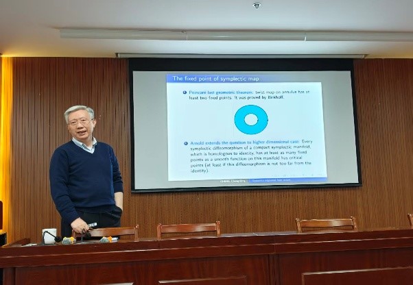 4月14日下午,著名数学家、南京大学原副校长、江苏省数学学会理事长程崇庆教授应老虎机 邀请、走进陈建功大讲堂,并为老虎机 师生做题为“Dynamics originated from Nature”的精彩学术报告。老虎机 党委主要负责人、动力系统团队和师生代表等参加,陈建功高等研究院常务副院长储继峰教授主持报告会。